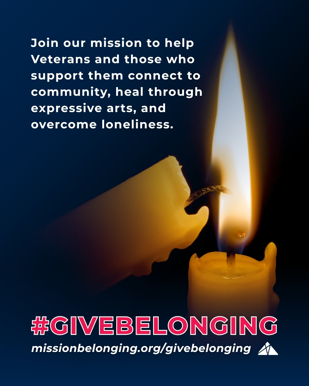 Mission Belonging builds bridges between veterans and citizens through creative expression. We use the language of creativity to promote empathy, foster understanding, and create a vibrant, diverse community. We envision a world where the power of creative expression fosters empathy, healing, and unity among veterans and citizens alike. A world where shared experiences of art fuel personal and social transformation, ignite connections, and build understanding across differences. We are a driving force that cultivates communities where every individual, regardless of background, finds their voice, their purpose, and belonging.